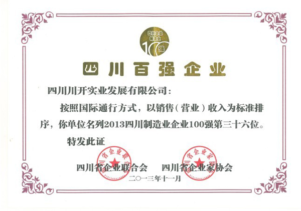 川開集團(tuán)榮獲2013年四川百強(qiáng)企業(yè)