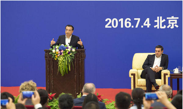 國務(wù)院總理李克強在北京人民大會堂同希臘總理齊普拉斯共同出席第二屆中希海洋合作論壇并發(fā)表致辭