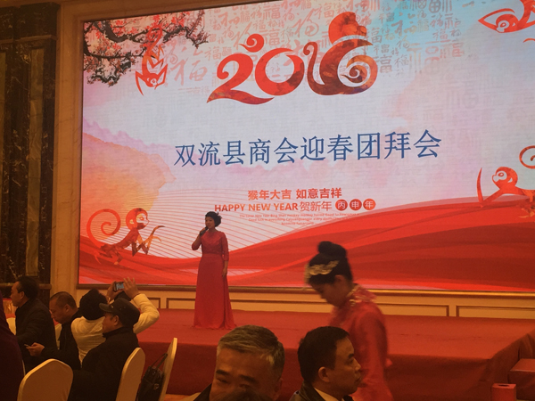執(zhí)委會(huì)結(jié)束后,雙流縣商會(huì)迎春團(tuán)拜會(huì)在原成都軍區(qū)黎明老將軍的書畫題作中拉開(kāi)帷幕。川開(kāi)集團(tuán)、華偉通訊、華體照明、航都酒店等會(huì)員單位為晚會(huì)帶來(lái)了精彩的歌舞表演。