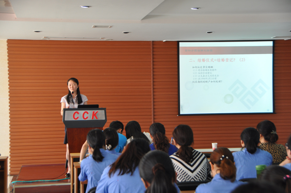 為進一步促進廣大員工對婚姻、家庭法律知識的學(xué)習(xí),不斷提高員工的法律素質(zhì)和法治觀念,2015年6月8日下午2:30在集團六樓會議室舉辦了“婚姻家庭法律知識講座”,此次培訓(xùn)是由縣司法局、縣婦聯(lián)、協(xié)和街道辦和川開集團工會共同攜手舉辦。全集團共123名員工參加了此次培訓(xùn),男女比例為4:6。